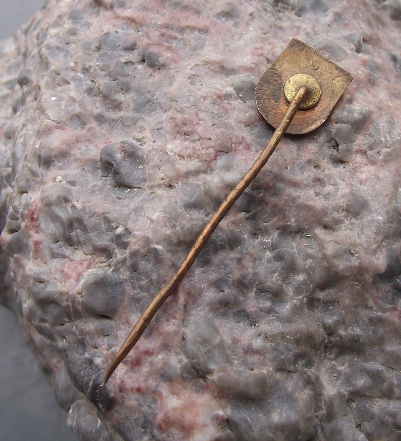 - The badge face is 1.2cm high and has a long stick pin style fastener to the rear.