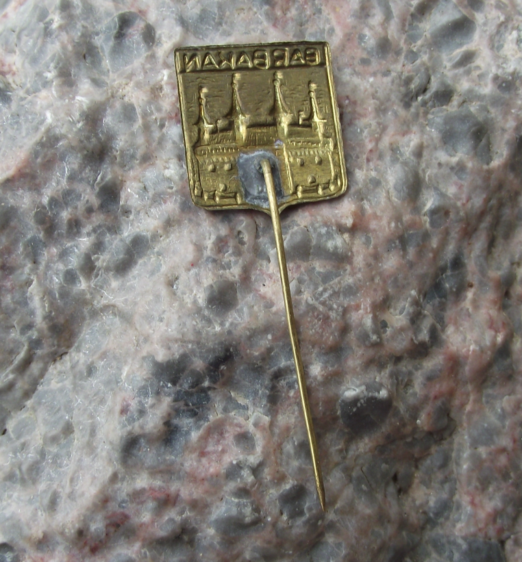 - A very pretty, vintage Polish pin badge. It is made from metal with painted interiors. The badge face is 1.6cm high and has a short, stick pin fastener to the rear.