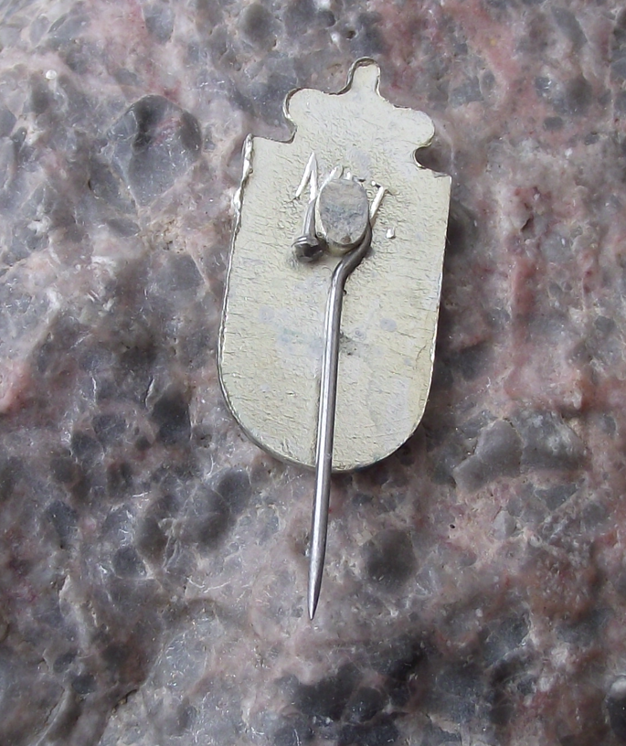 - A very pretty, vintage Polish heraldic pin badge. It is made from metal with painted interiors. The badge face is 1.6cm high and has a short, stick pin fastener to the rear.