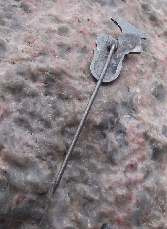 - A very pretty, vintage Polish heraldic pin badge. It is made from silver coloured metal. The badge face is 1.8cm high and has a short, stick pin fastener to the rear.