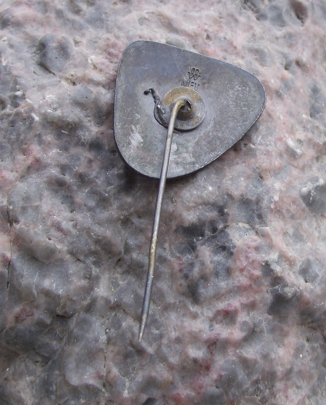 - A very pretty, vintage Polish pin badge. It is made from a silver coloured metal. The badge face is 2cm high and has a long, stick pin fastener to the rear.