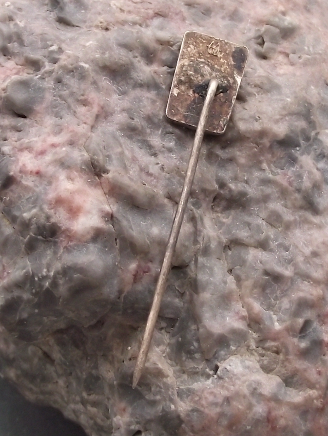 - The badge face is 1.2 cm high and has a long stick pin style fastener to the rear.
