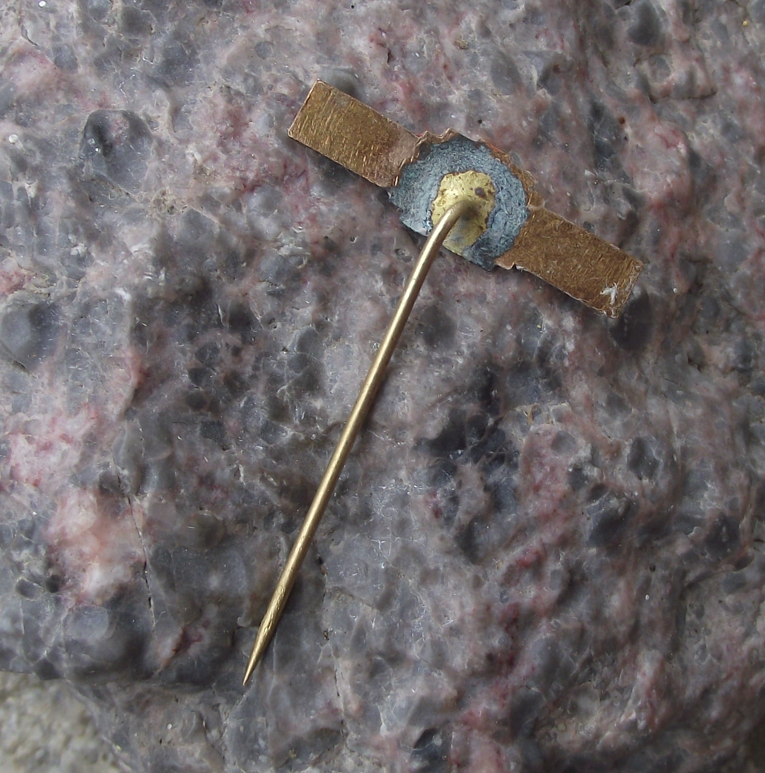 The badge face is 2.8cm wide and has a long stick pin style fastener to the rear.