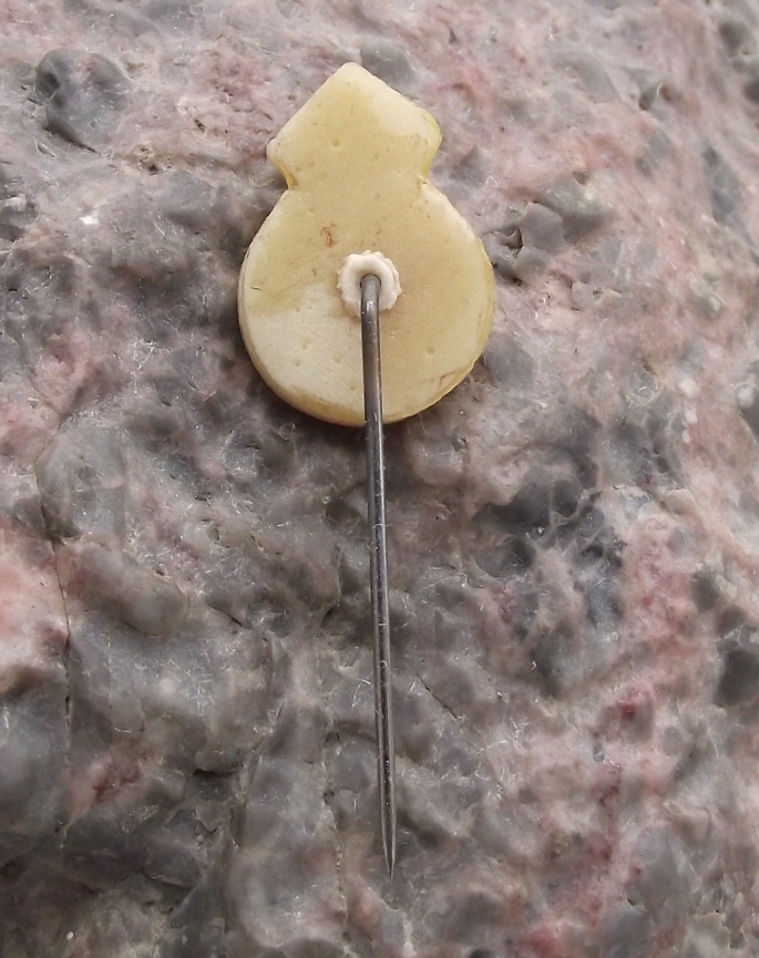 The badge face is 1.9cm high and has a short, stick pin style fastener to the rear