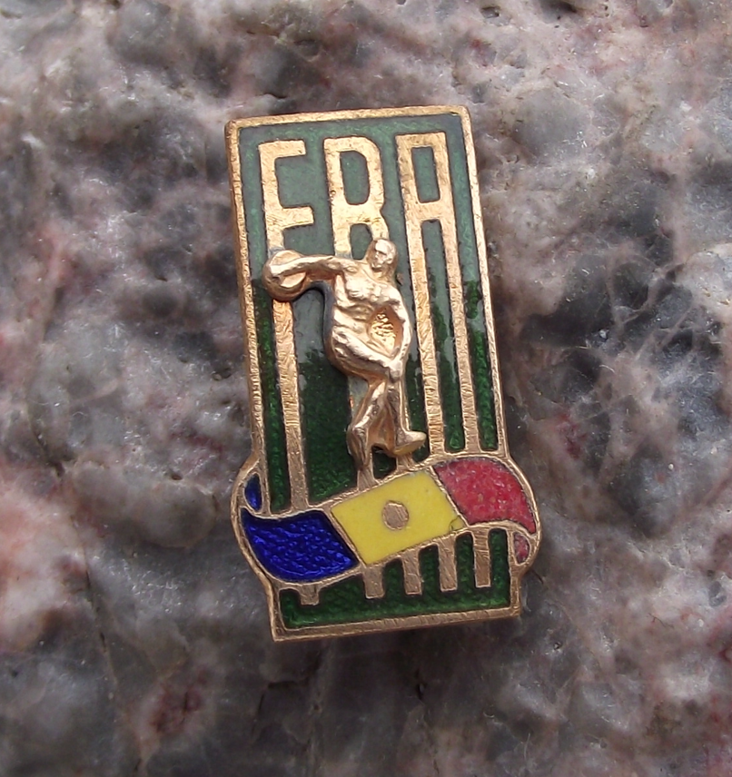 - An excellent vintage metal pin badge made from a gold coloured metal. The badge face is 2.1cm high and has a safety clasp style fastener to the rear. Featuring the text FRA who are the Federația Română de Atletism or Romanian Athletics Federation and features a 3D Discobolus over the Romanian flag.