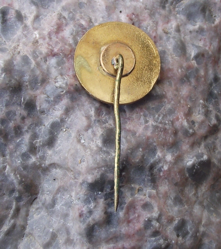 The badge face is 1.5cm wide and has a long, stick pin fastener.