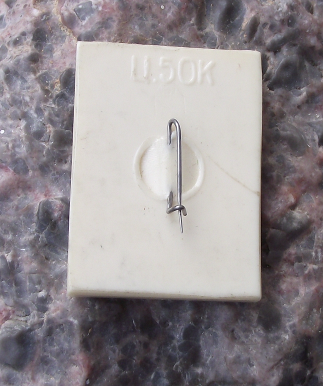 - This badge is 2.8cm high and made from a white coloured plastic and glass mirror with a safety clasp style fastener to the rear.