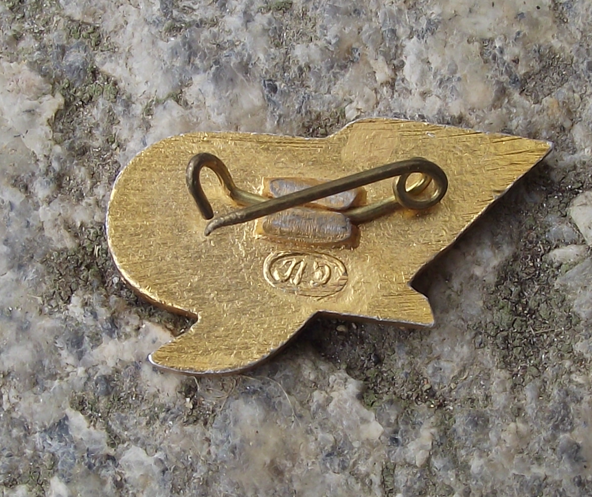 - This badge is 2.2cm wide and made from a gold coloured metal with a safety clasp style fastener to the rear.