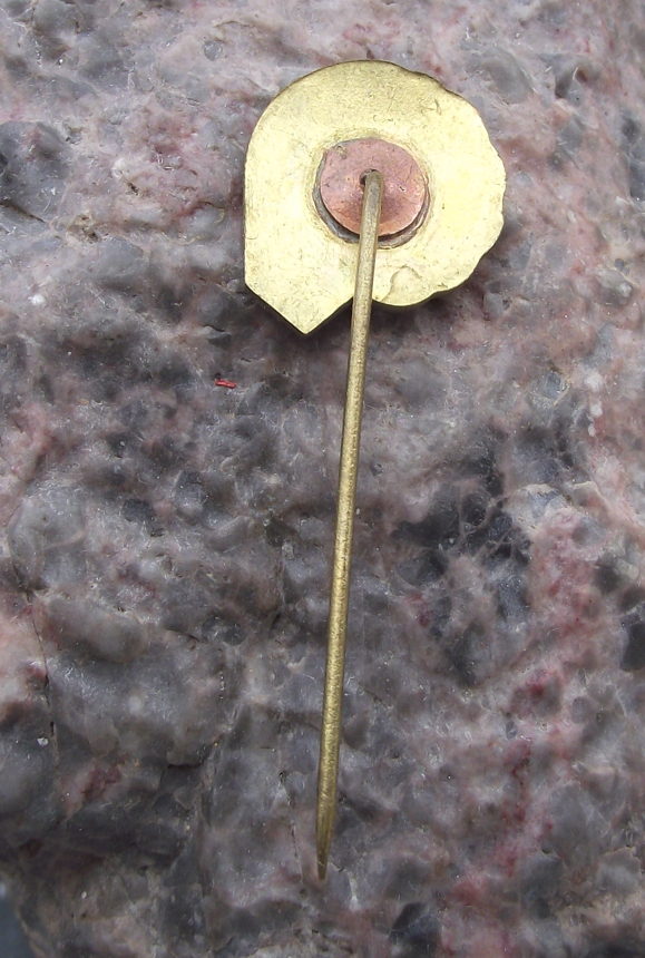 The badge face is 1.7cm high and has a long, stick pin style fastener to the rear.