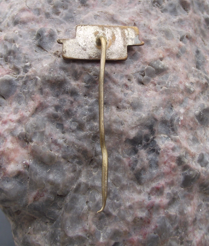 The badge face is 2cm wide and has a long, stick pin fastener.