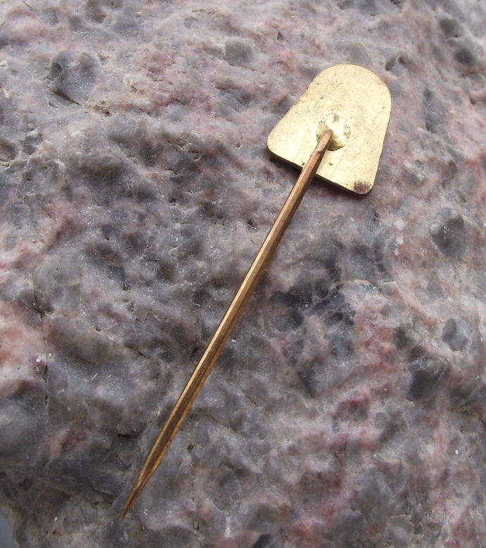 The badge face is 1.3cm high and has a long, stick pin fastener.