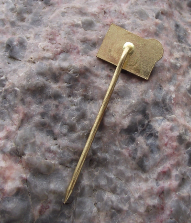The badge face is 1.4cm wide and has a long, stick pin fastener.
