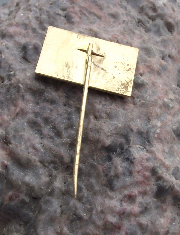 The badge face is 2.3cm wide and has a long, stick pin fastener.