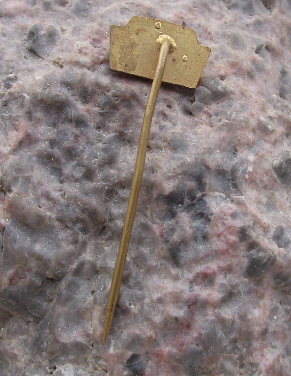 The badge face is 1.5cm wide and has a long, stick pin fastener.