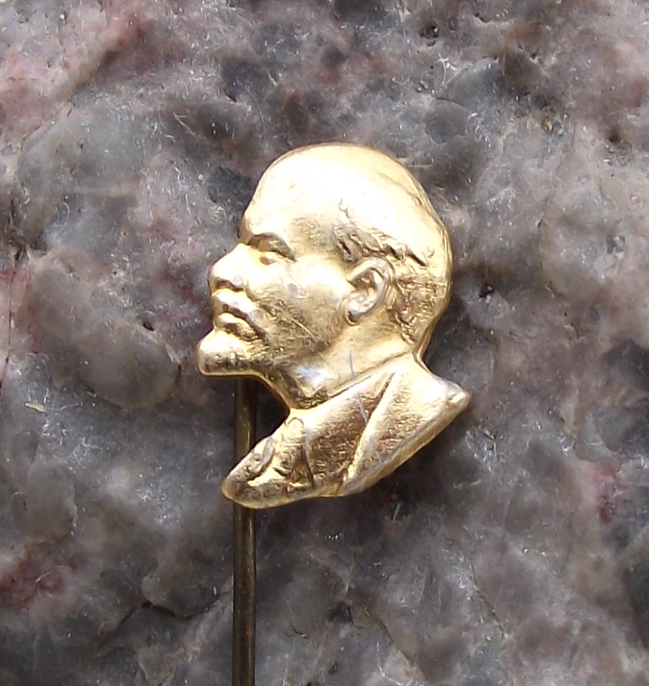 Vintage Small Golden Lenin Head Profile Communist Leader Pin Badge