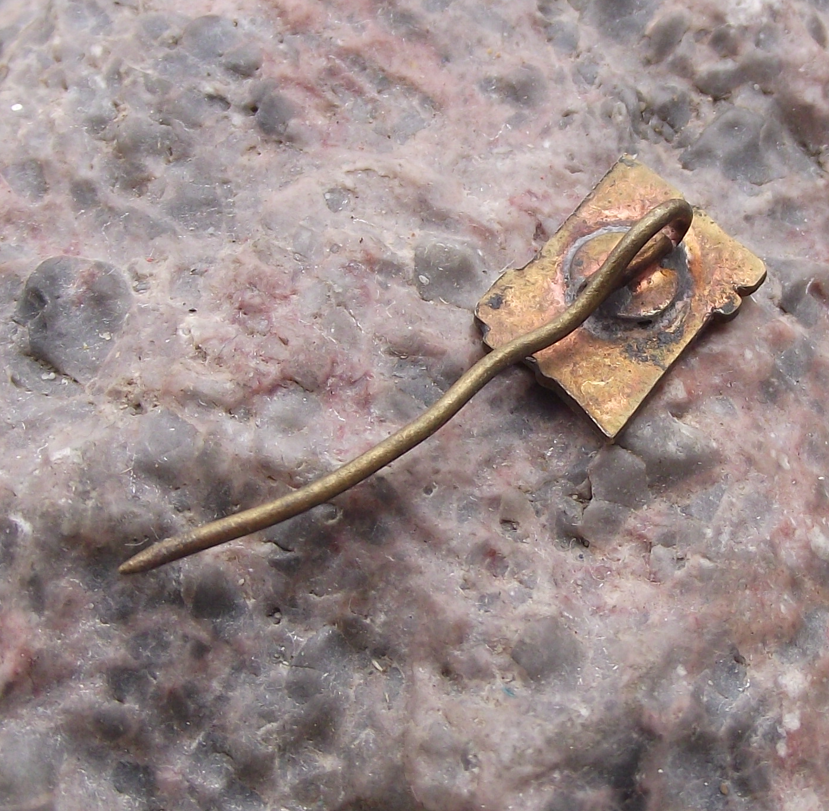 The badge face is 1.3cm high and has a long stick pin style fastener to the rear.