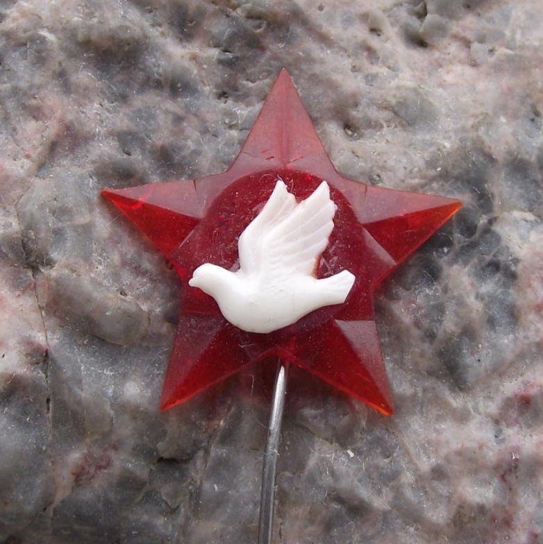 Vintage Soviet Flying White Dove World Peace Communist Red Star Pin Badge