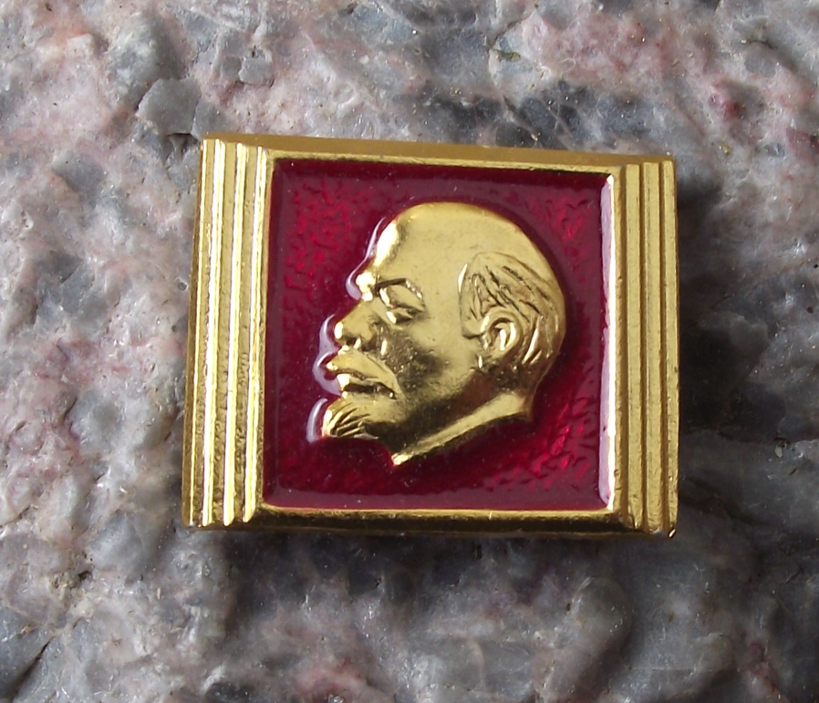 Vintage Soviet Lenin Head on Tablet Shaped Block Political Pin Badge