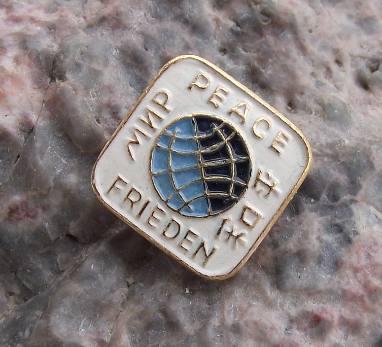 Vintage Soviet World Peace in Four Languages MUP Frieden Pin Badge