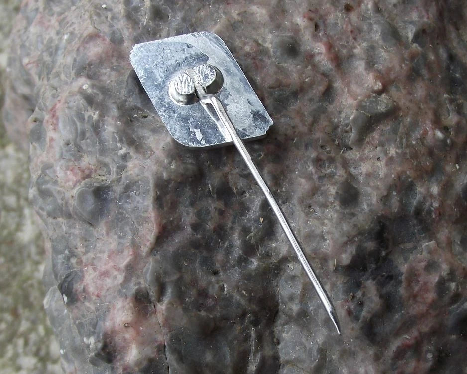 The badge face is 1.5cm high and has a long, stick pin style fastener to the rear.