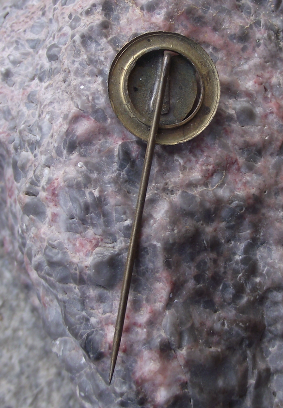 The badge face is 1.6cm high and has a long, stick pin style fastener to the rear.
