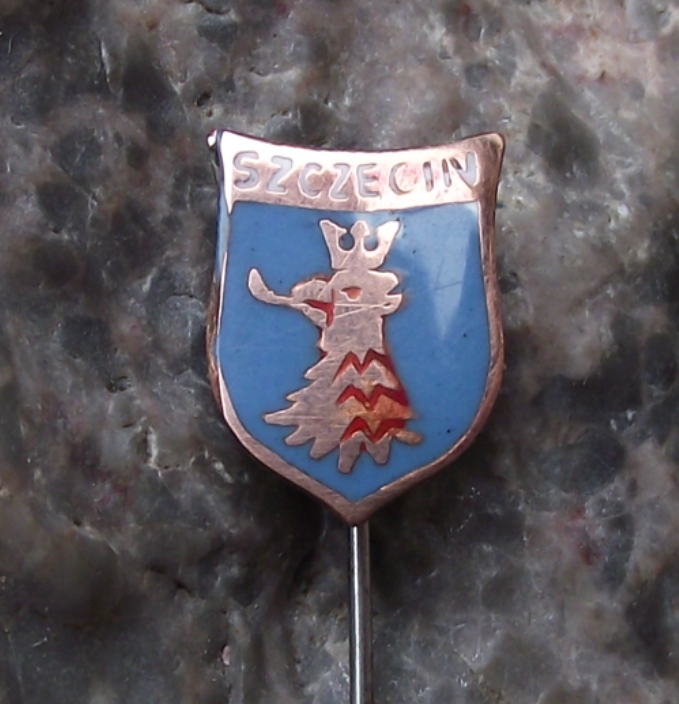 Vintage Szczecin Poland Heraldic Crest Small Polish Shield Enamel Pin Badge