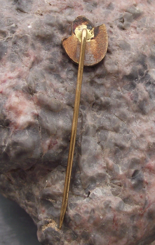 - The badge face is 1.3cm high and has a long stick pin style fastener to the rear.