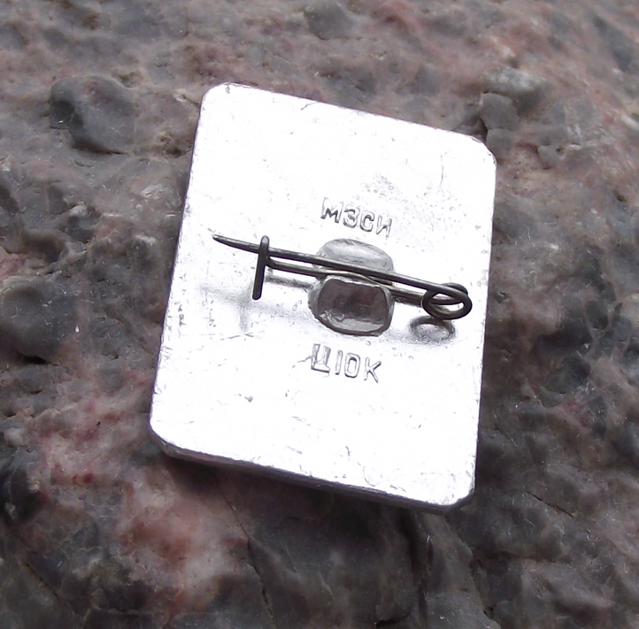 - A silver coloured, metal badge 2.4cm high with a safety clasp style fastener to the rear.