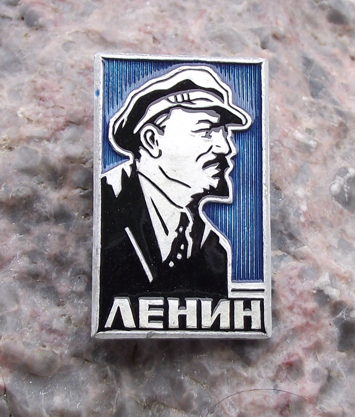 - A pretty, vintage Lenin badge, 2.7cm high, made of a silver coloured metal and featuring the head of Lenin on a blue field. It has a clasp style safety clasp to the rear.