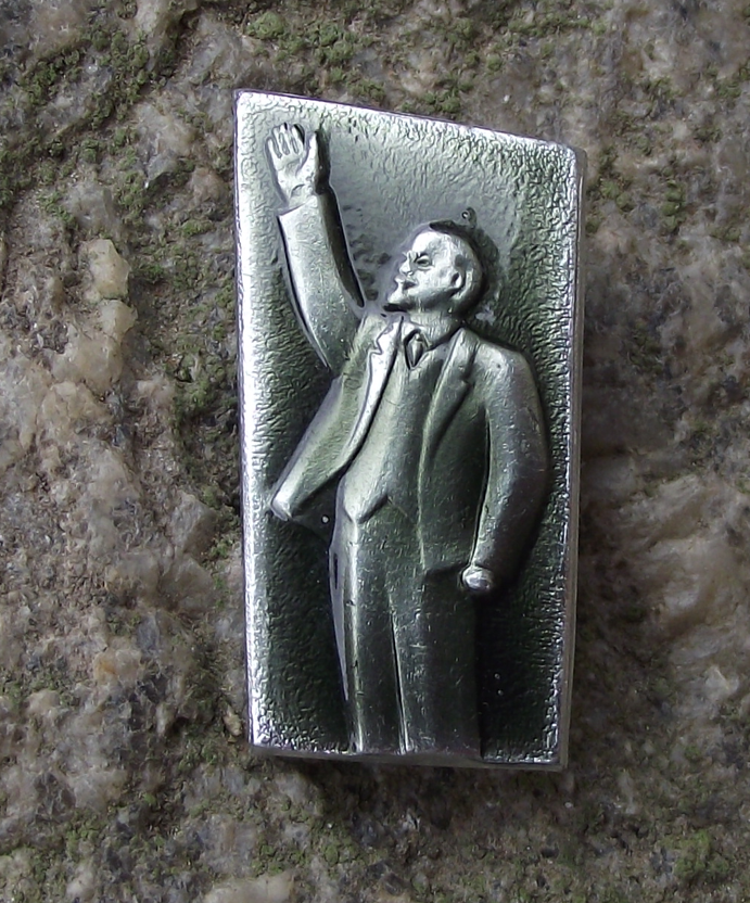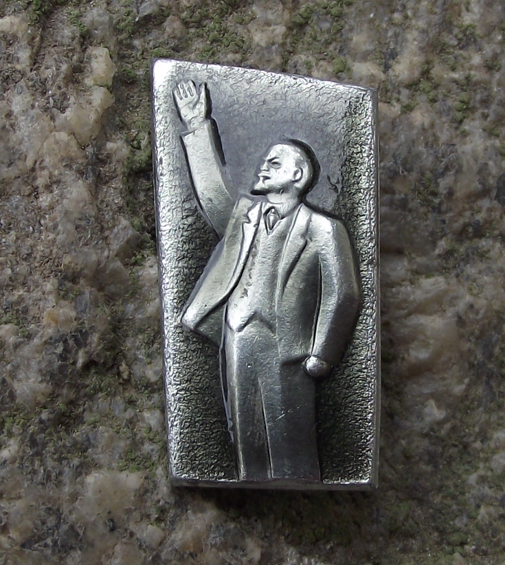 - A pretty silver coloured pin badge featuring Vladimir Lenin with a raised arm, waving.
