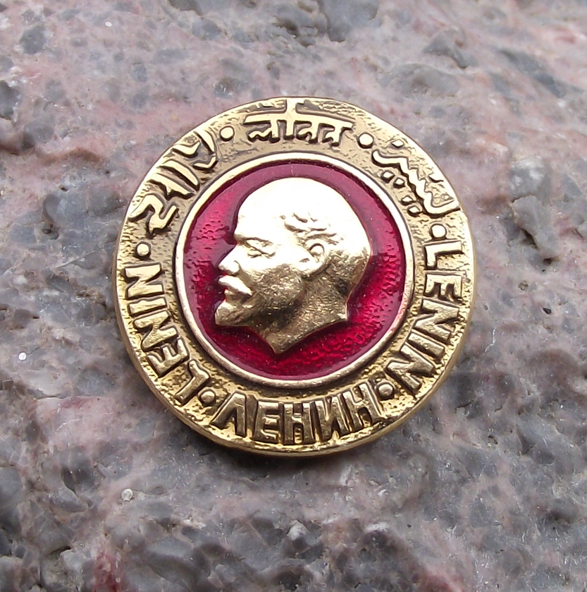 Vintage Vladimir V I Lenin Name in Multiple Languages Pin Badge