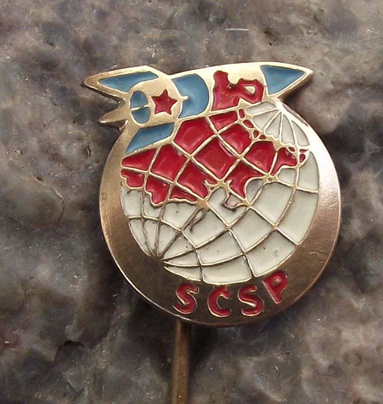 Vintage Vostok 1 Space Race Yuri Gagarin Exploration SCSP Rocket Earth Pin Badge