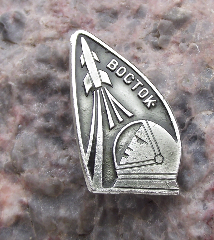 - This is a very pretty, Vostok pin badge celebrating the successful launch of Vostok 1. A silver coloured metal badge, the badge face is 2.5cm high and has a safety clasp style fastener to the rear. Featuring the Russian text VOSTOK.