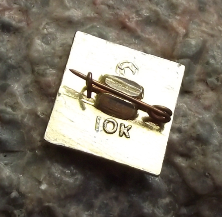 The badge face is 3.2cm wide and has a safety clasp or long stick pin style fastener.