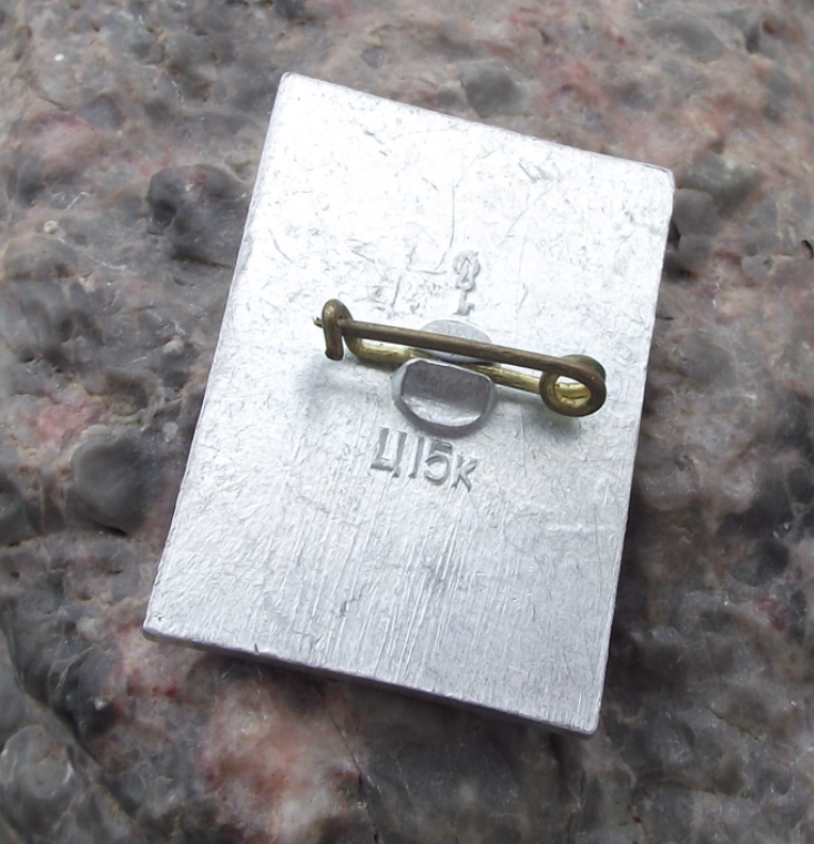 - A silver coloured metal badge with a 2.8cm high badge face and a safety clasp style fastener to the rear.