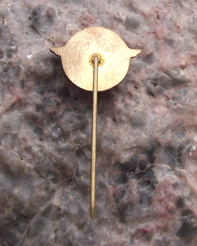 A vintage pin badge from the Yugoslavia Railway Company, JZ. The badge face is 1.7cm wide, made from a gold coloured metal and has a stick pin fastener to the rear.